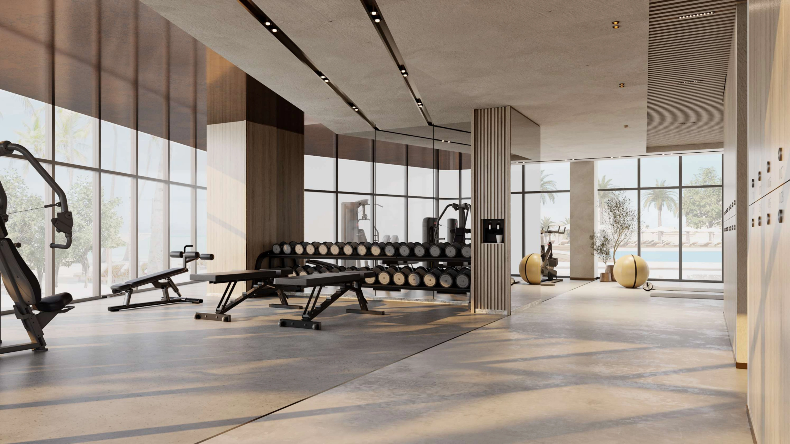 Luxury spa, gym, and yoga areas