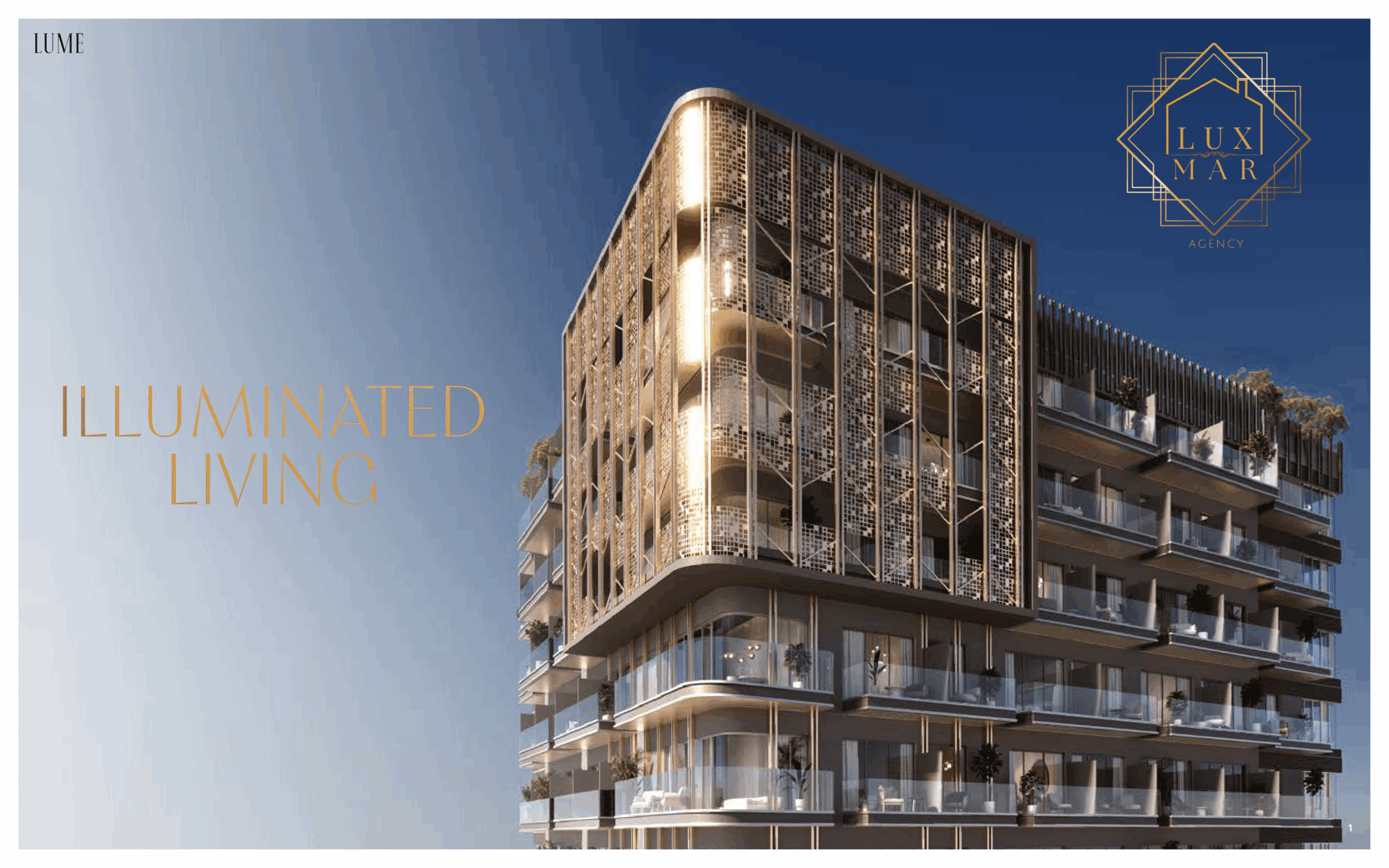 Experience elevated urban living at Lume Residence, an exclusive new development in the heart of Jumeirah Village Circle, Dubai. Choose from stylish studio, 1-bedroom, and 2-bedroom apartments starting from 261,177 EURO- 1,074,777 AED, 33.86sq.m.-364.36sq. ft., each thoughtfully designed for comfort, elegance, and functionality.
